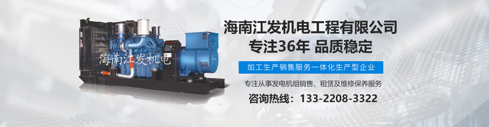 海南江發(fā)機電工程有限公司是海南經(jīng)營進口、國產(chǎn)柴油發(fā)電機組、是海南較早、較大的銷售、租賃服務(wù)及維修保養(yǎng)專業(yè)機電公司。從1985年開始,公司勵精圖治、銳意進取、不斷創(chuàng)新,不僅在海南機電行業(yè)領(lǐng)域中具有先進技術(shù)、完美管理、誠信服務(wù),高超的產(chǎn)品質(zhì)量和性能,而且還有合理的產(chǎn)品性能價格比,令客戶滿意以及完善的支持保障。 在客戶心目中,江發(fā)公司不僅具有最好的企業(yè)信譽,還是客戶最信賴的誠信單位,而且會帶給客戶永遠的光明和豐厚回報。